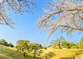 - 日本庭園と桜の美しい景観