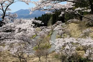 南阿蘇にある人気の桜スポット。桜並木が続き、阿蘇の雄大な景色と桜のコントラストが楽しめます。ドライブコースとしても人気があります。