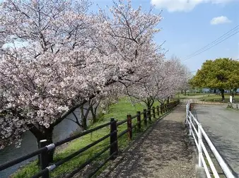 宇土市にある桜の名所で、約2000本の桜が咲き誇ります。池の周りを囲むように桜が咲き、桜のトンネルのような景色が楽しめます。